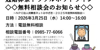 冠婚葬祭トラブルホットラインを開催します!(2026.3.25)